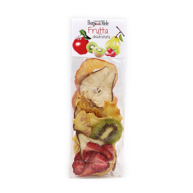 La merenda ideale per bambini e adulti. Grazie al sistema di disidratazione a freddo, le caratteristiche organolettiche e le proprietà della frutta rimangono inalterate.